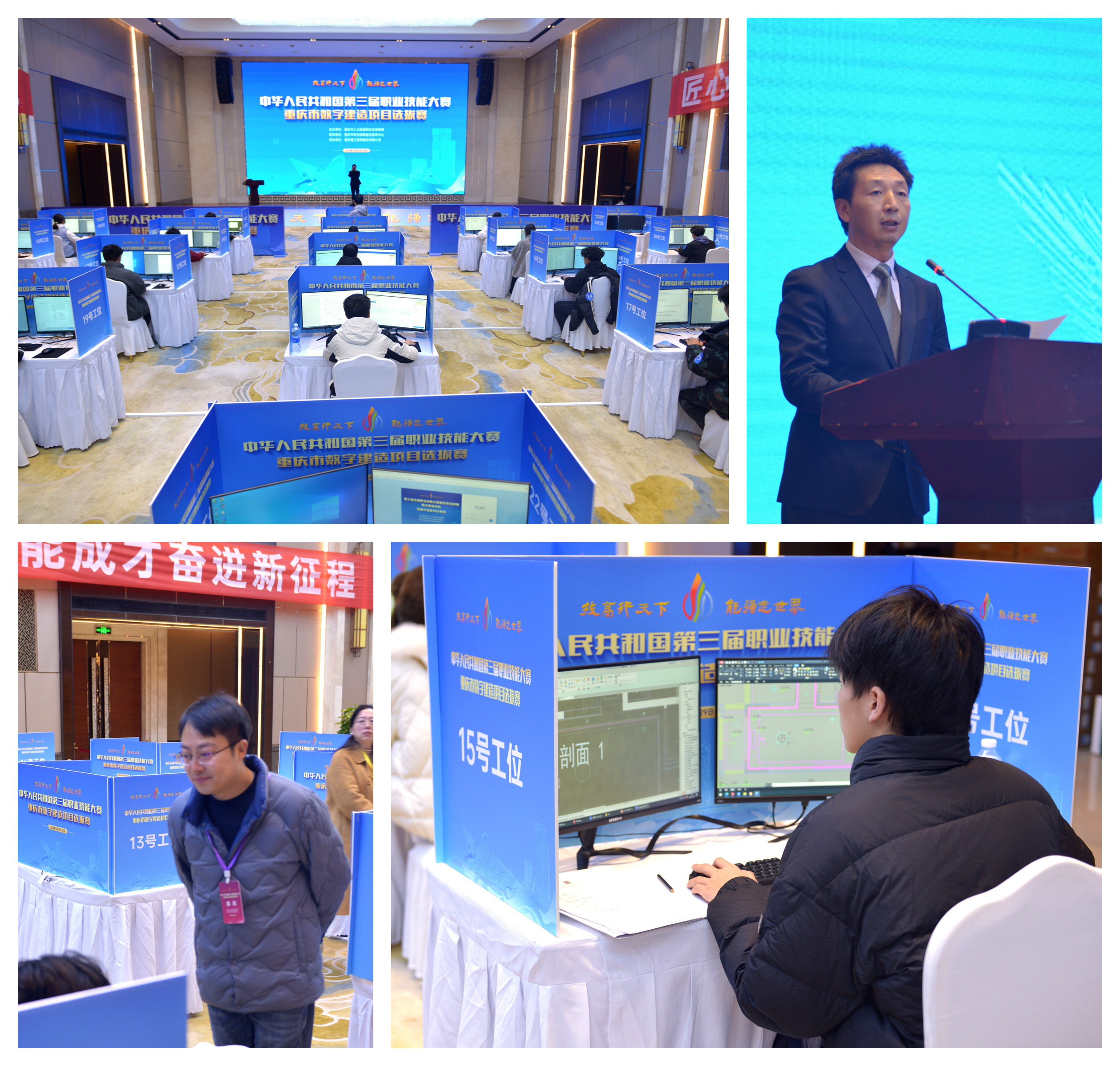 12月29日至30日,中華人民共和國第三屆職業技能大賽重慶市數字建造項目選拔賽在重慶建工集團舉行,來自全市11所高校、職業院校的20名選手齊聚一堂、同臺競技。市人力社保局、市國資委、兩江新區人力社保局有關負責人現場巡考,集團黨委副書記、工會主席魯學佳出席啟動儀式并致辭。